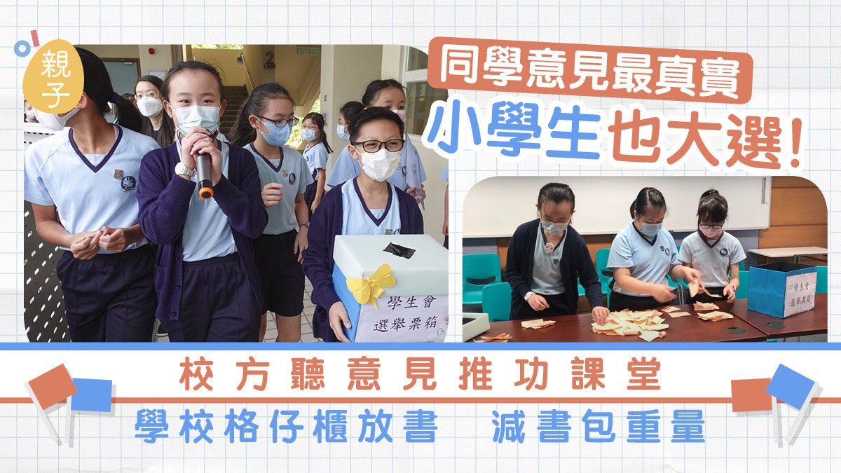 | 10/11/2020 香港01 小學生也大選!校方聽學生會意見推功課堂 格仔櫃放書減書包重量 |